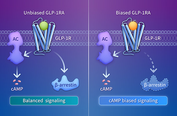BiasVantage™ 偏向型激动剂发现平台利用基于结构的合理设计及全面的信号传导分析,打造疗效增强、脱敏程度降低的精准疗法。该平台开发信号选择性配体,通过降低脱敏程度延长受体活性,从而比非偏向型方法获得更佳的治疗效果。